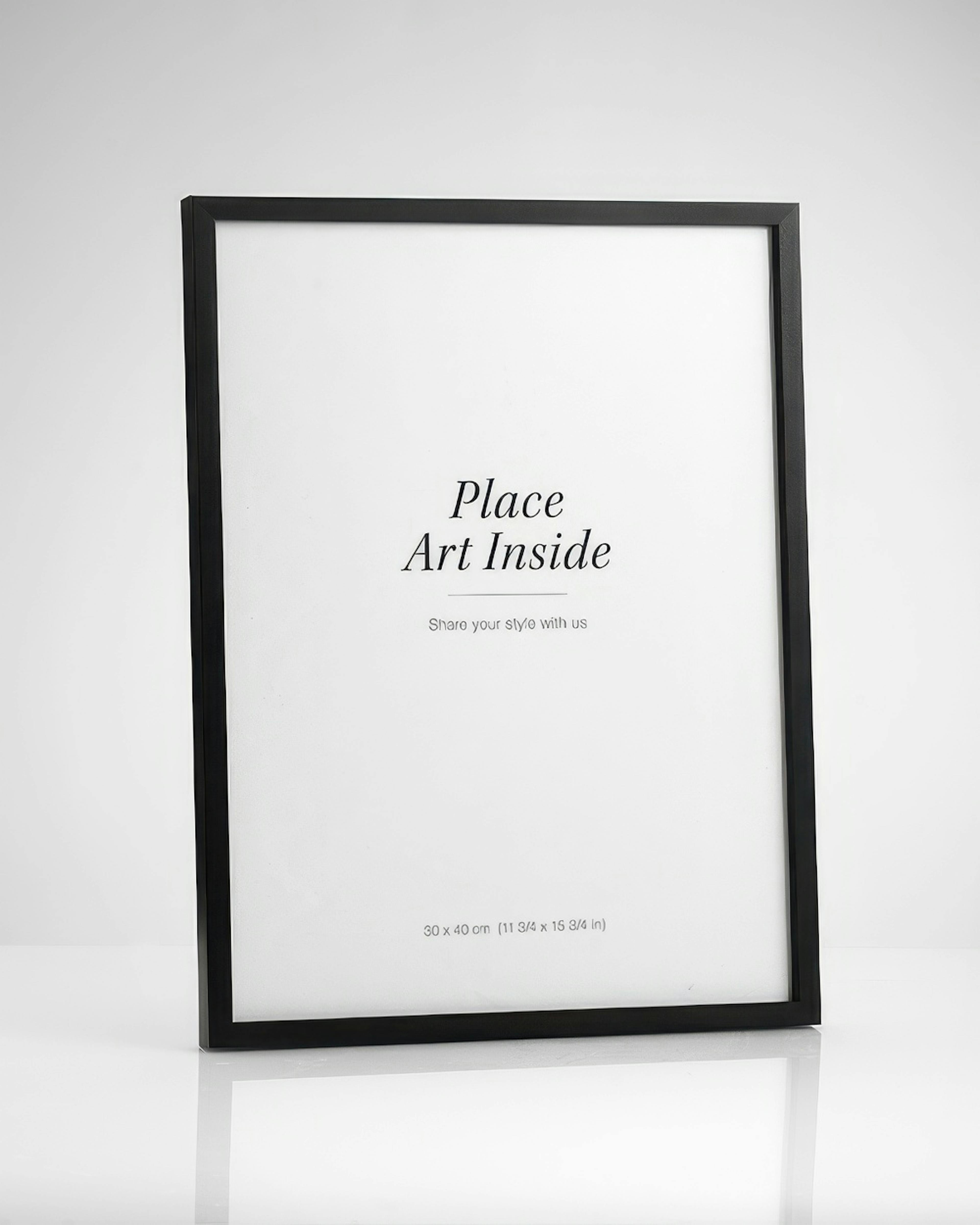 La couleur noire sous sa forme la plus pure et la plus élégante. Ce cadre raffiné présente un relief intéressant grâce à sa bordure abrupte créant une séparation nette avec le verre.