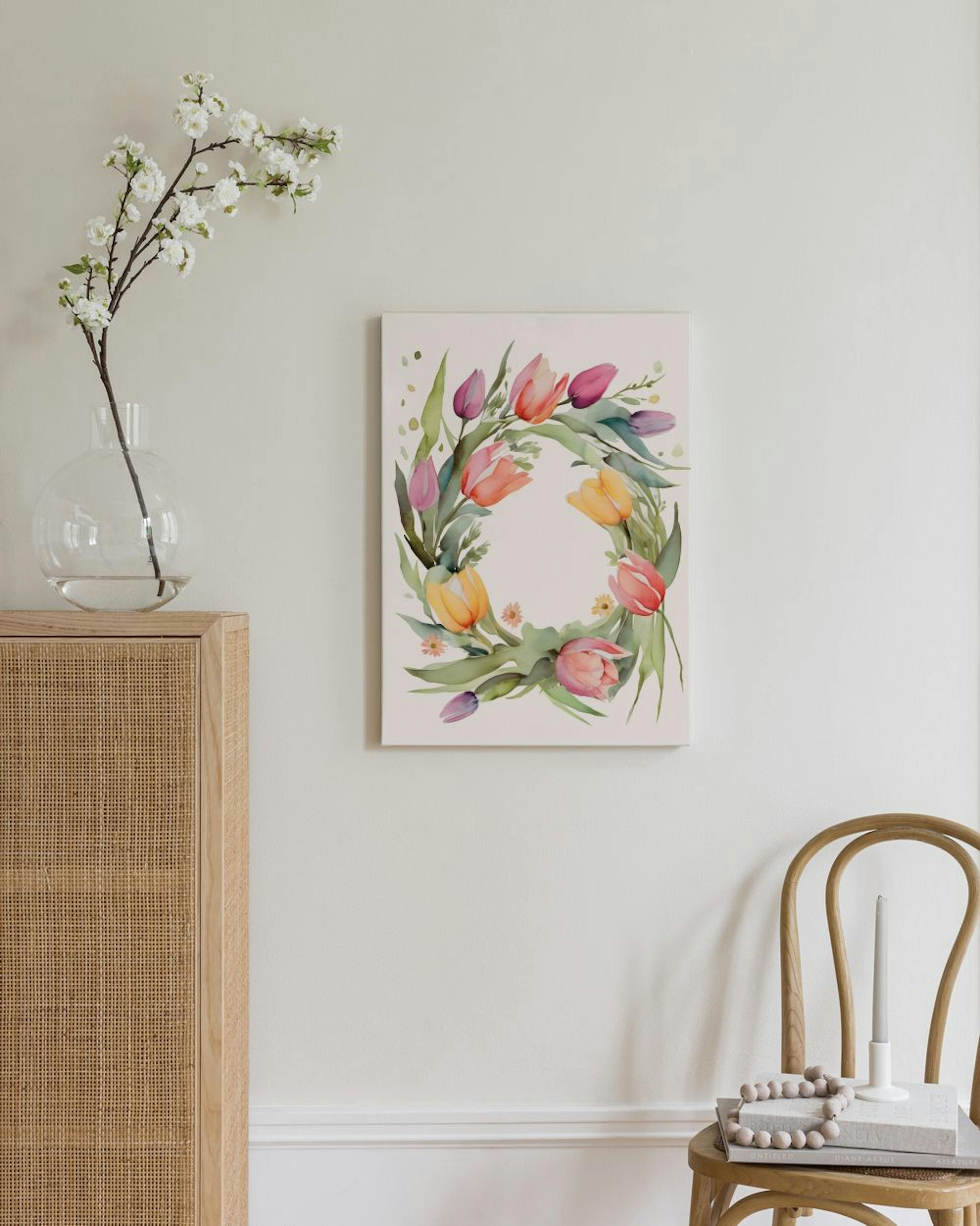 À partir de 11.07 CHFUne toile florale avec des tulipes roses, violettes, rouges, oranges et jaunes. Un motif aquarelle délicat avec des feuilles vertes sur fond crème.