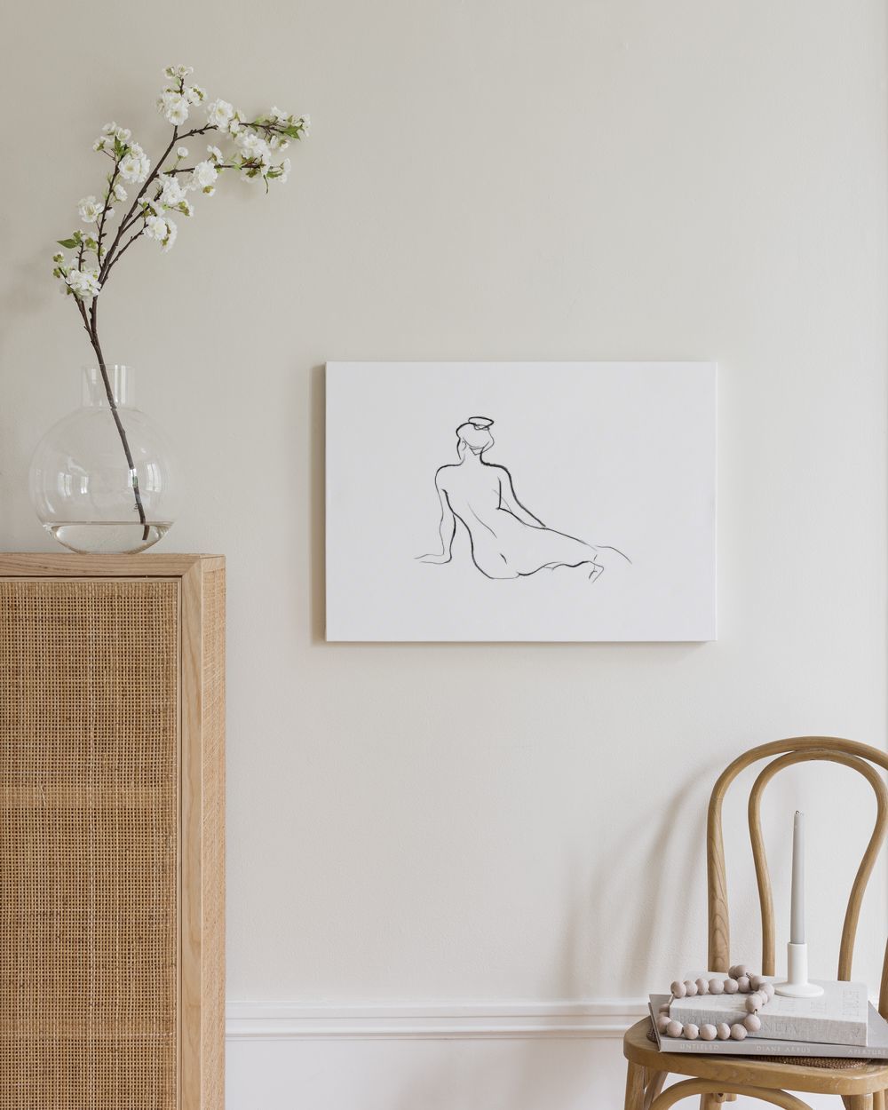 À partir de 11.07 CHFCette toile minimaliste montre une silhouette assise en noir et blanc. Le trait fin et simple crée un effet élégant pour votre mur.