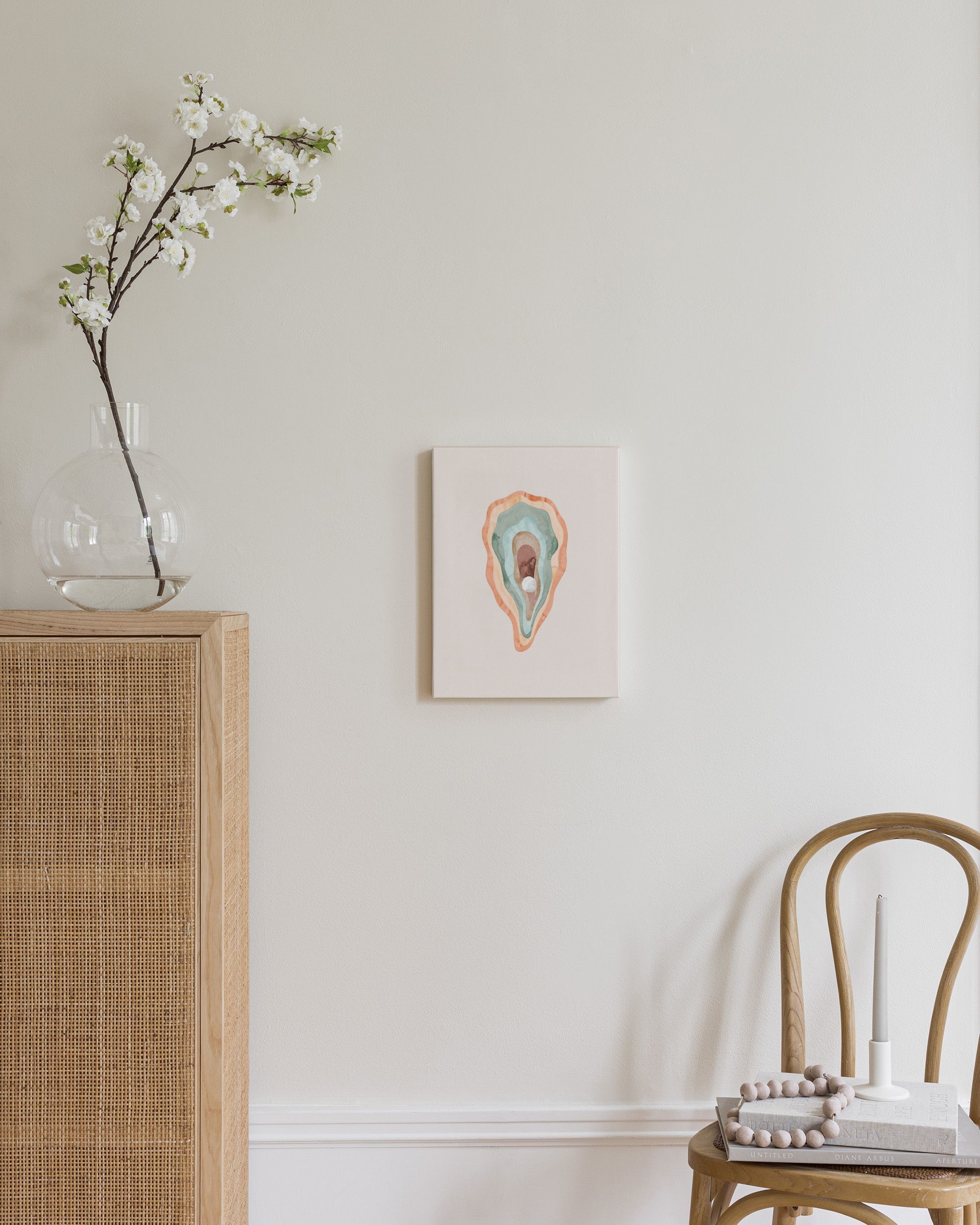 À partir de 11.07 CHFCette toile présente des teintes douces en orange, vert et bleu qui se mélangent comme une aquarelle, créant un effet naturel et apaisant.