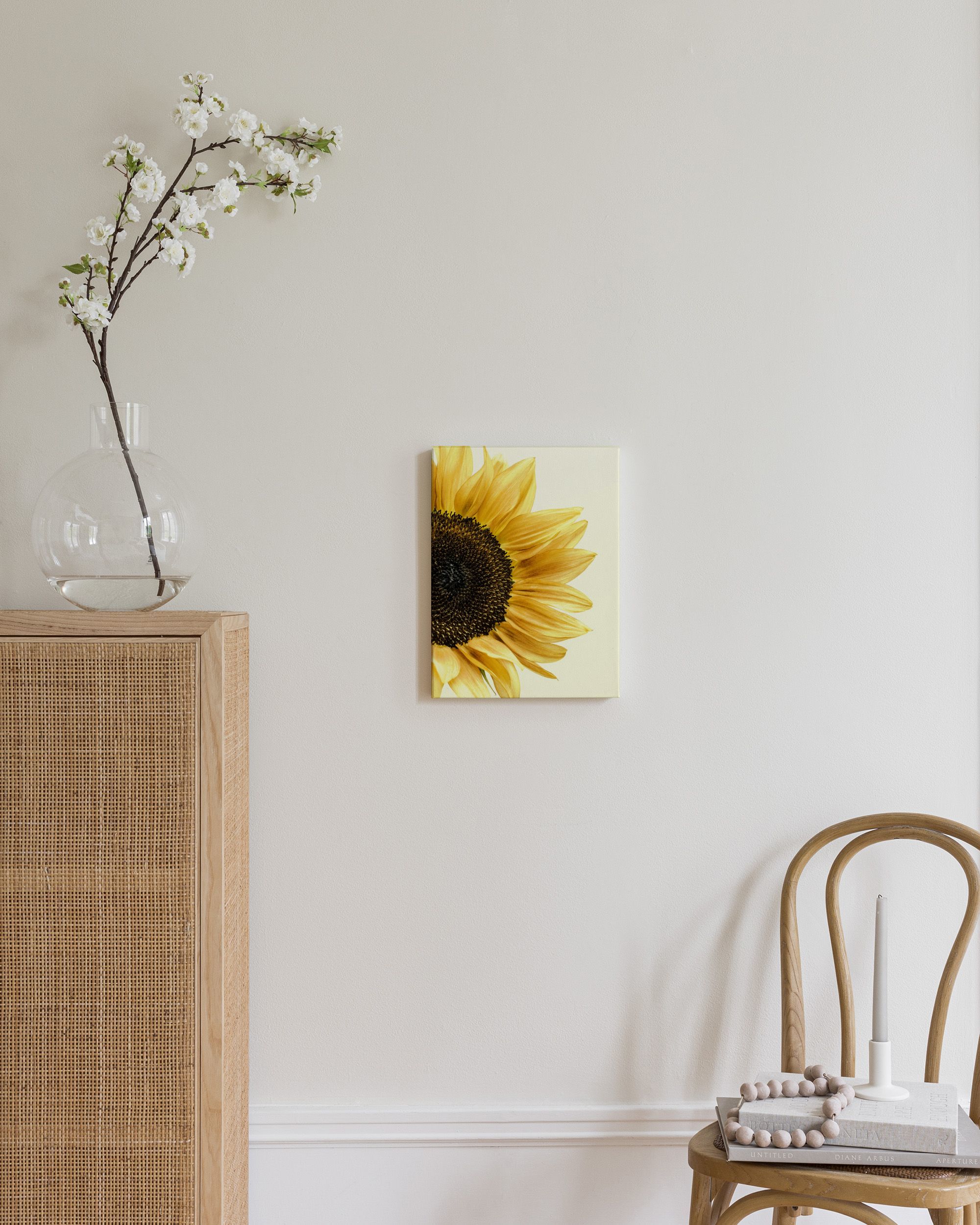 Questo poster presenta un girasole luminoso con petali gialli brillanti e centro marrone scuro. Porta il sole nella tua casa con questo poster allegro.