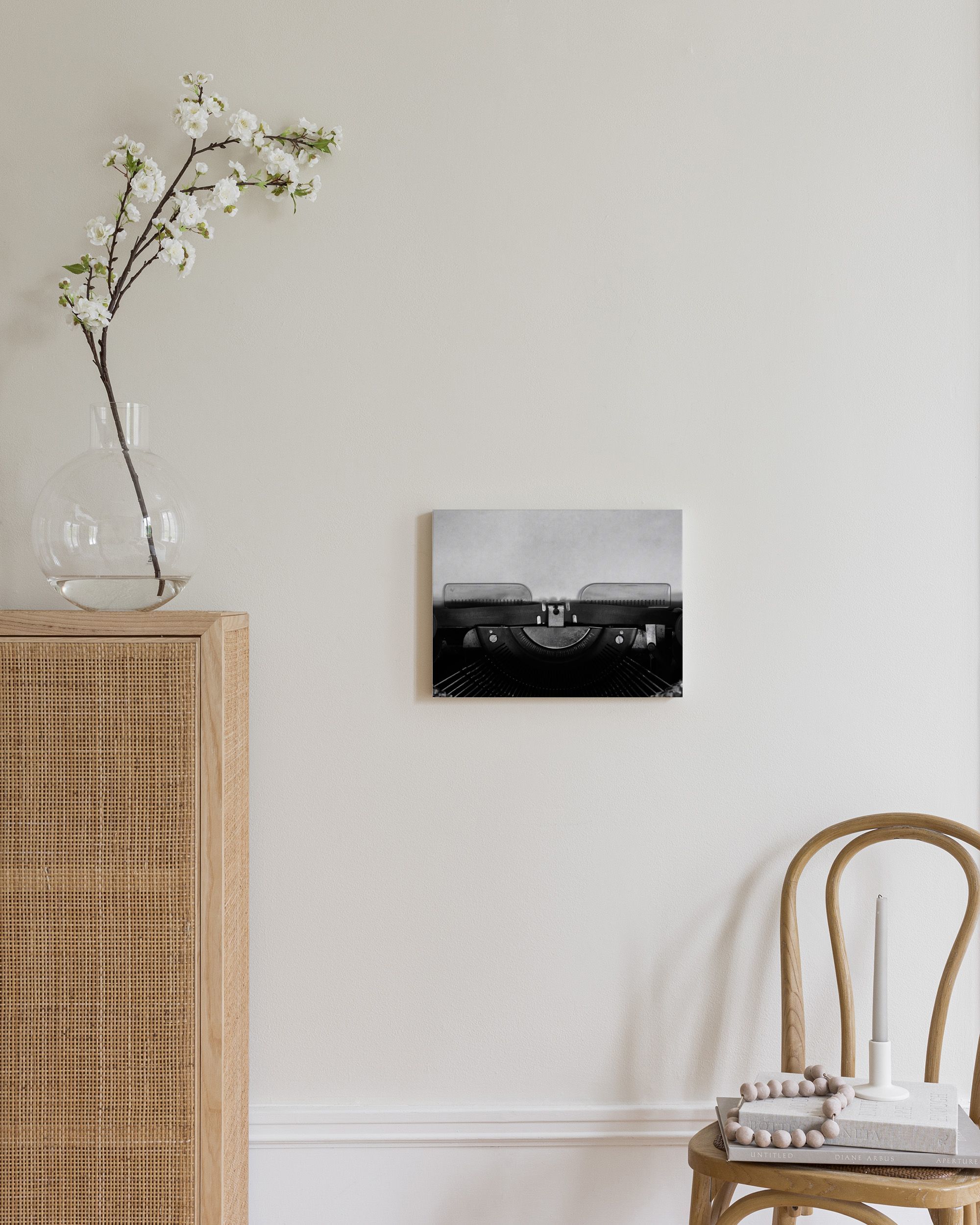 Ein schönes schwarz-weißes Poster einer alten Schreibmaschine. Die grauen Töne und das klassische Design machen dieses Poster perfekt für dein Zuhause.