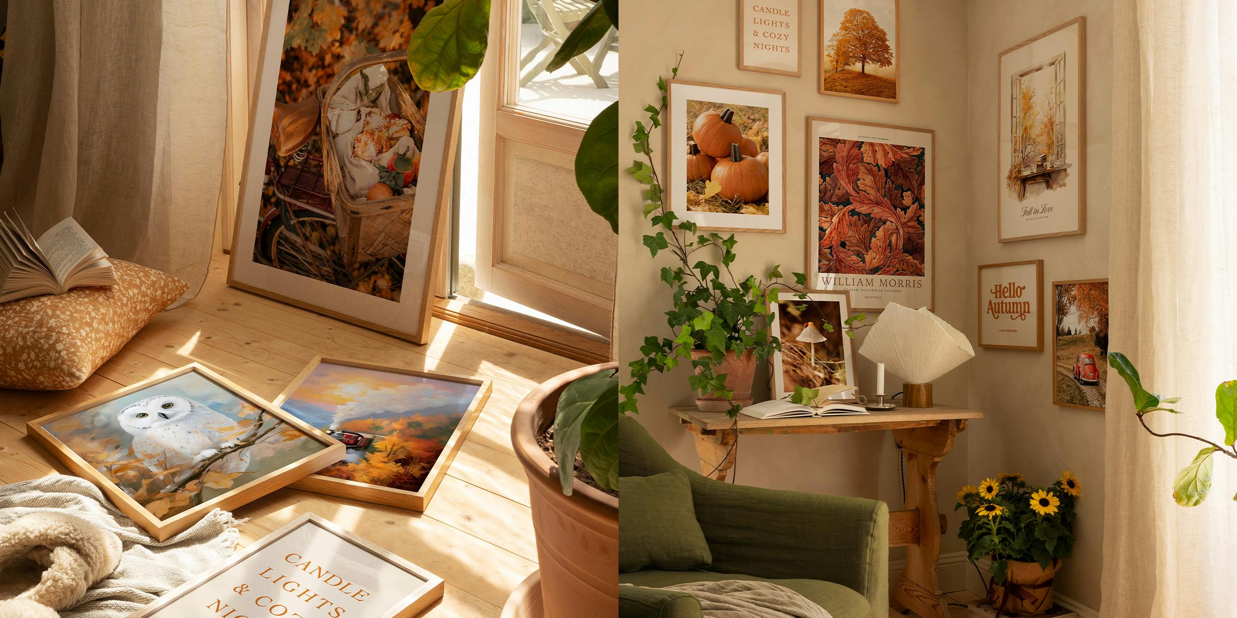 In deiner Nachbarschaft sieht es vielleicht weniger nach goldenem Herbst aus, also warum hängst du nicht ein paar hübsche Herbstposter an die Wand und holst dir die Herbstvibes nach drinnen? Egal ob du wunderschöne Landschaftsfotografie oder süße Kürbisbilder magst, mit passenden Herbstmotiven kannst du dir ein warmes, herbstliches Gefühl zu Hause schaffen.